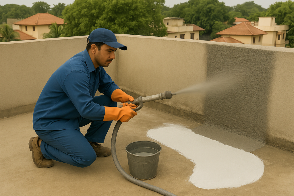 Effective waterproofing treatment to protect roofs and terraces from water seepage and monsoon damage.