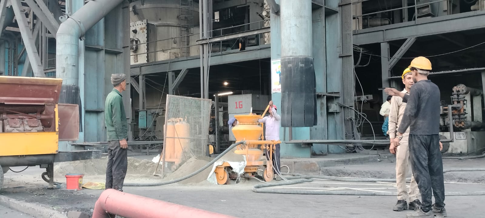 High-pressure concrete spraying for repairing, strengthening, and restoring damaged RCC structures.